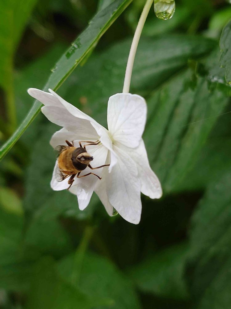 ハチンブ〜~~😁。お相手は紫陽花❗。正体は花虻でした👌。
