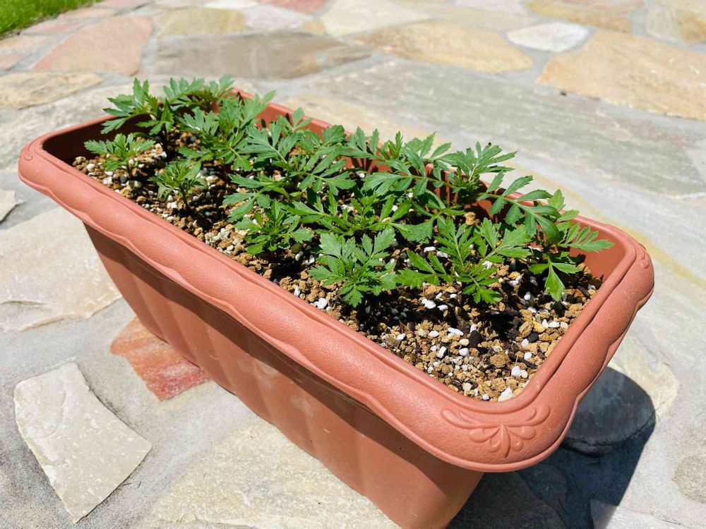 マリーゴールドを予定数より倍くらい播種してしまったため、余ったプランターに植え替えました😄