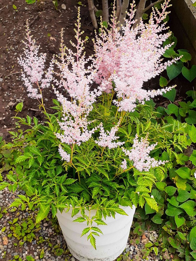 鉢植えの薄いピンクのアスチルベがもふもふになって可愛いです😌💓
