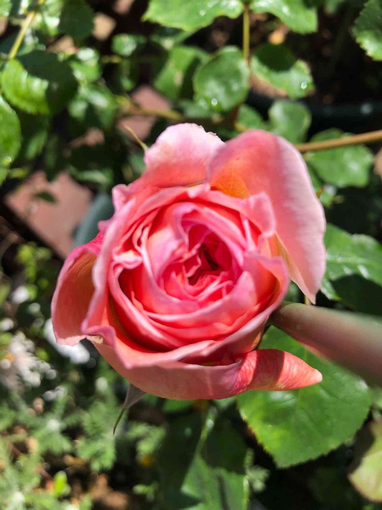 さっちさんからご推薦いただき、植え付けたアブラハムダービー🌹が、咲きました❣️