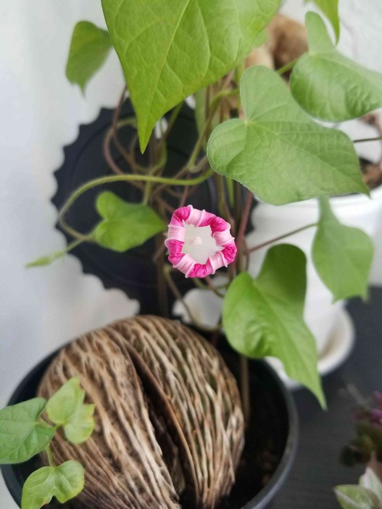 勝手に生えてきたアサガオ今年もピンクでした!