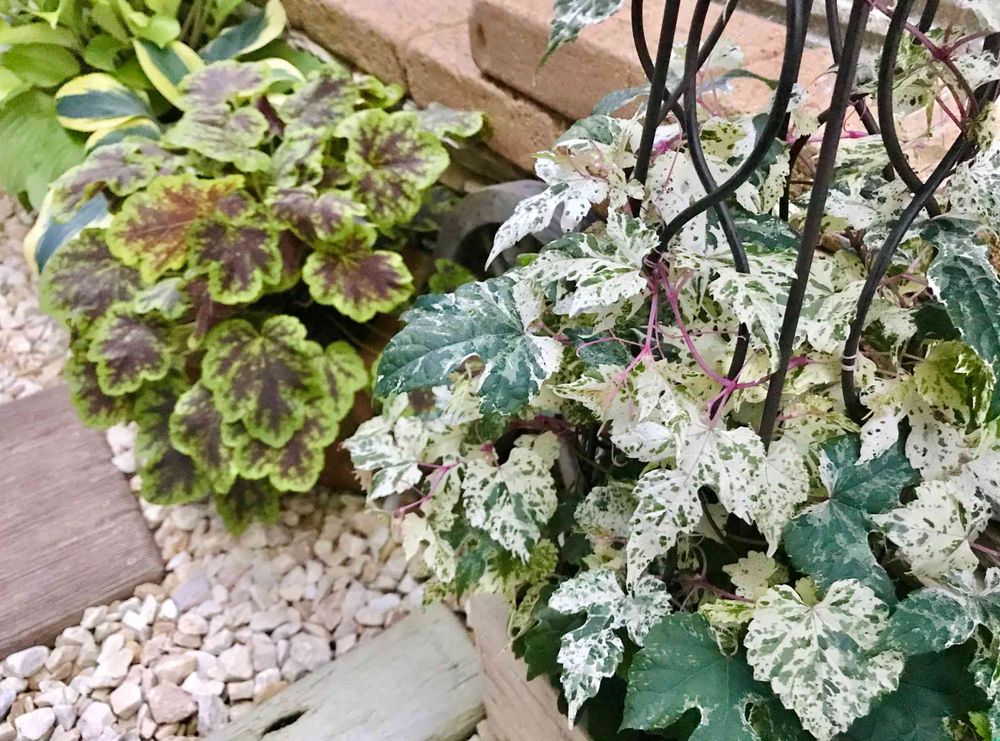 ヒューケレラ ソーラーエクリプスと斑入り野ブドウ🌿