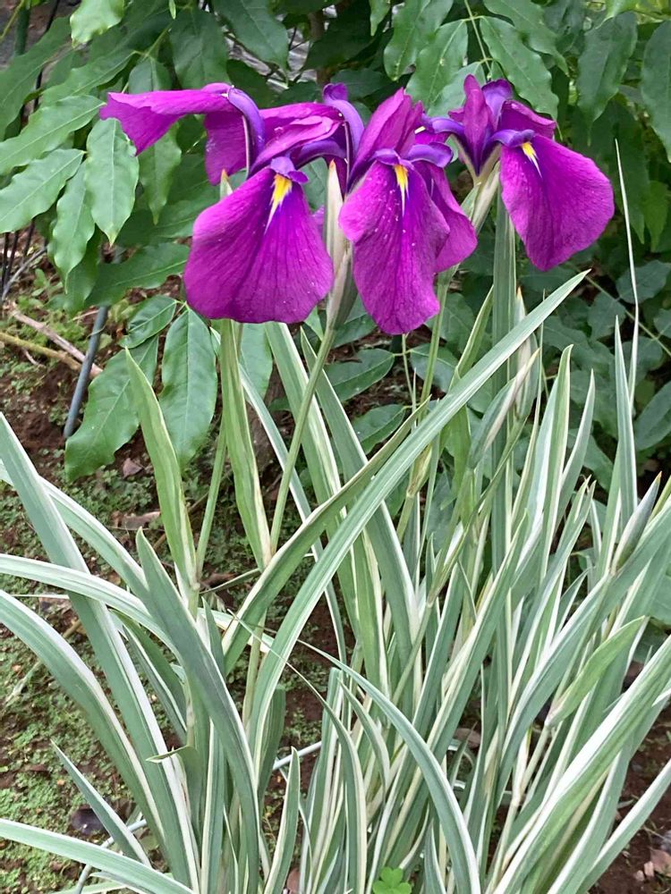 葉っぱが斑入りのハナショウブ 今年も無事咲きました♪♪♪
