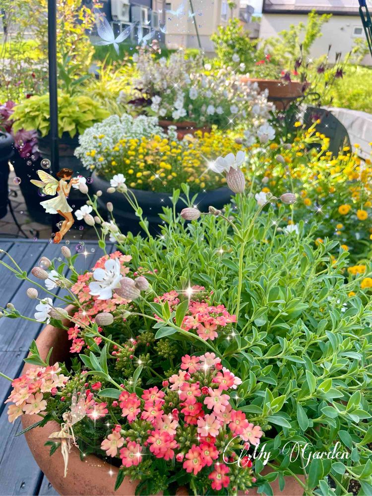 隙間に植えた、バーベナとシレネたちが(⊃_ ̫ _)⊃幅を利かせちゃったわ〜💦