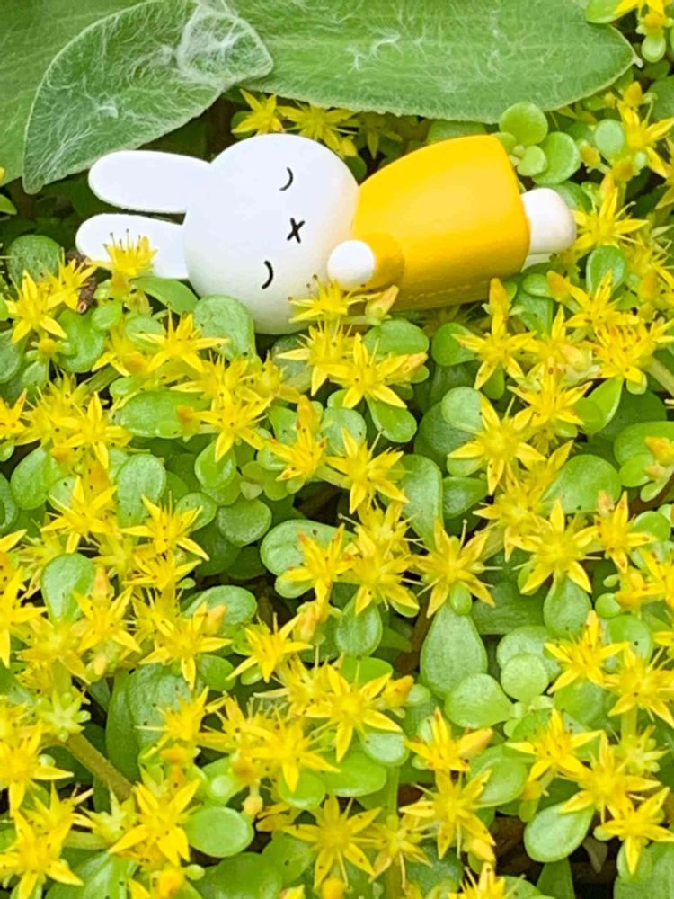 セダムさんの上でミッフィーちゃん気持ち良さそうに寝てるねぇ~💞