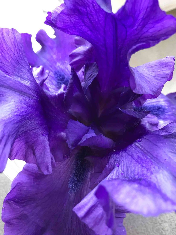 綺麗な色。ジャーマンアイリス私も折ってしまい、コップで。