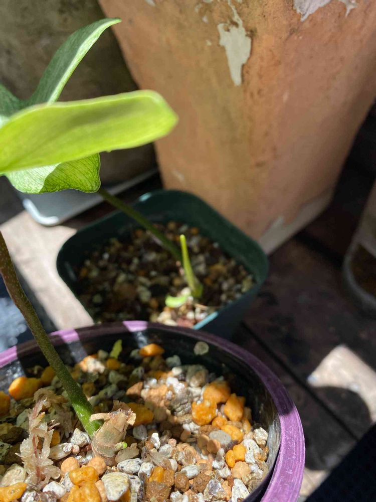 アランさんの新芽もどんどん大きくなって来ました。最近は葉が濃くなる変化が楽しみでしたが、よく見るとドロンさんの根元からも新芽らしきものが🌱また楽しみが増えた🎁