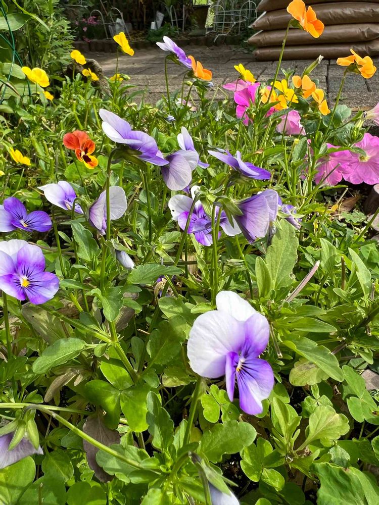 地植えのビオラ3度目の 切り戻しの前に➰記念撮影をෆ ̖́-