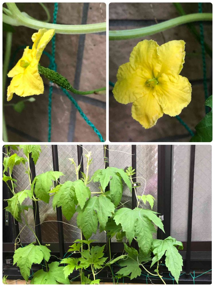 雌花の下にはゴーヤの赤ちゃんがすべてに付いています♡