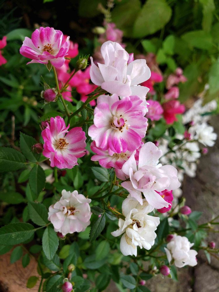 お庭に可愛いミニミニバラのレンゲローズさん🌹🌹🌹、色変わりで連続開花、楽しみも倍増しますネ🎶