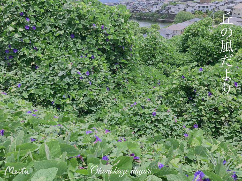 おはよう御座います。起伏に富んだ緑の絨毯に咲くノアサガオが魅力的ですね。まさにジブリの世界ですよ。