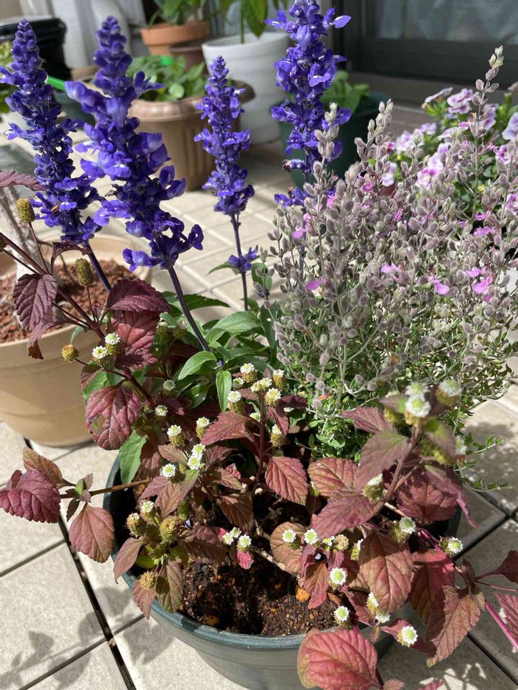 ブルーサルビアとハーブの寄せ植え。良い香り。