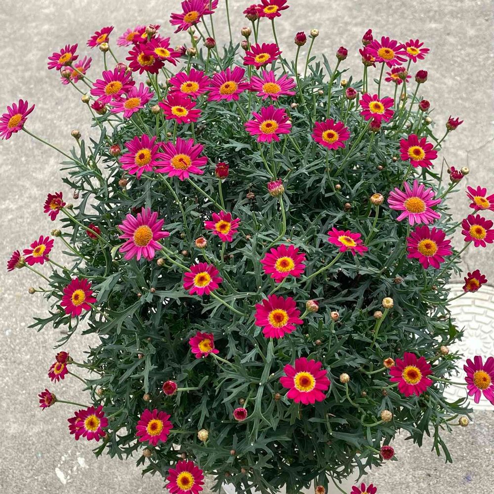 小花ばかりになっても可愛いボンザマーガレットのチェリー。梅雨の切り戻し前の最後の花盛りです。
