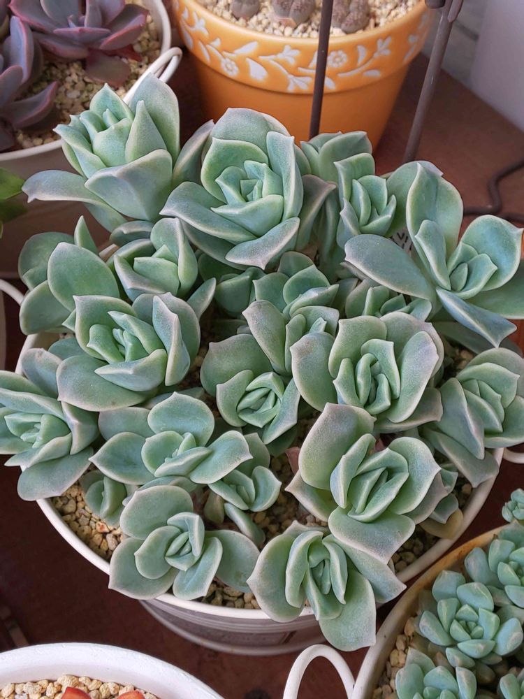 昨春と昨秋に親株からモギモギした葉っぱを葉挿した子を今年3月に鉢まとめしてます🎶