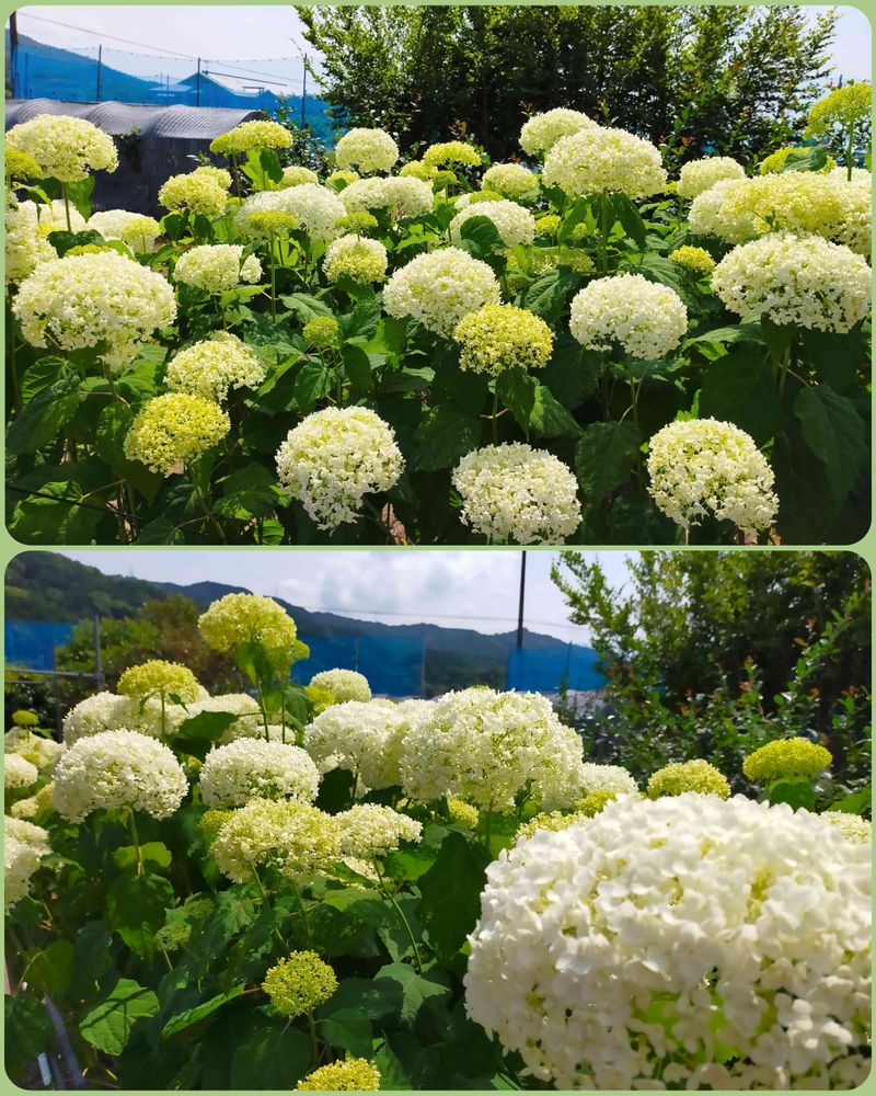 アナベル綺麗ですね🤍💚雲のよう🎶