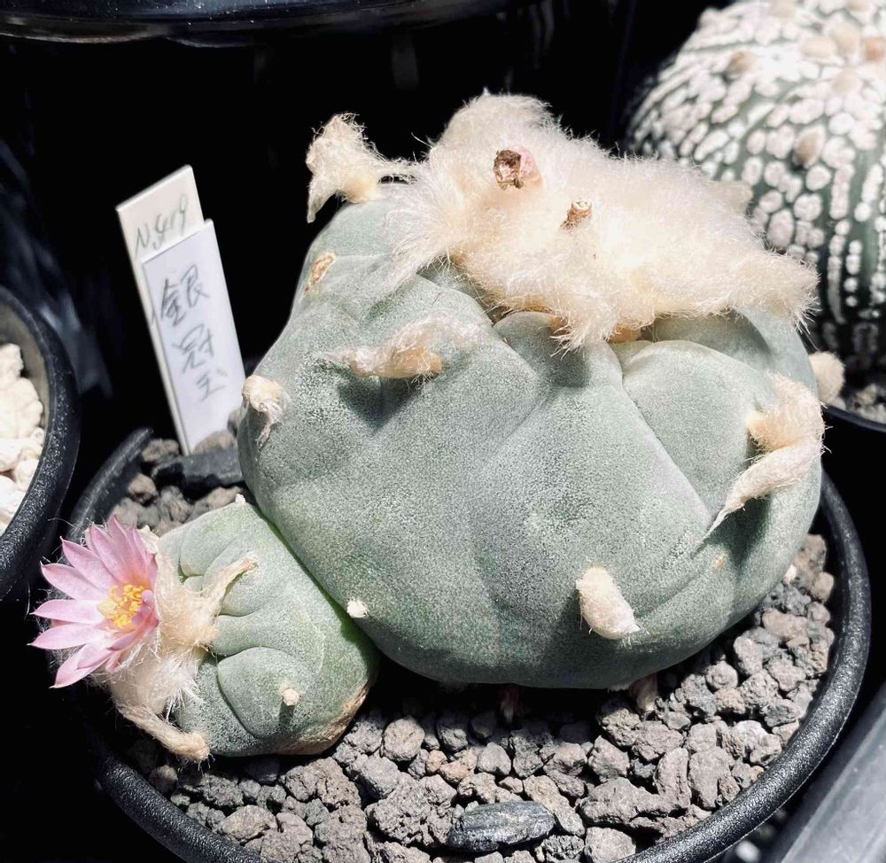 ロフォフォラ・銀冠玉。そっちかいという開花🌸