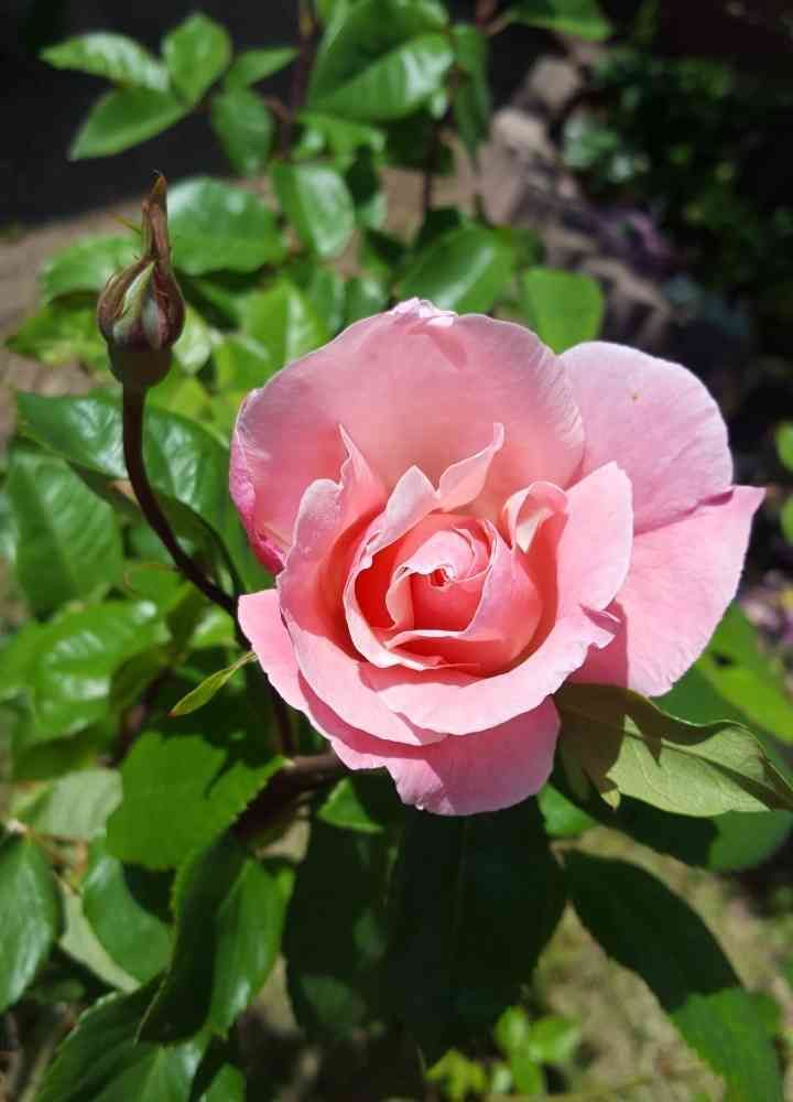 何年か前、庭植えしている黄色いバラに、枝変わりでピンクのバラが咲きました。その枝を挿し木して咲いたのが、これです。枝変わりの枝でもう一本挿し木したものがあるのですが、不思議なことに、ピンクでも黄色でもなく、薄茶色の花が咲きました。今年はまだ咲いていないのですが、花びらもなんと一重です。あまりにも地味なので処分しようかと思ったのですが、世界で一つだけの品種かもしれないので、育てることにしました。😁 今年も咲くかなぁ。😌💖