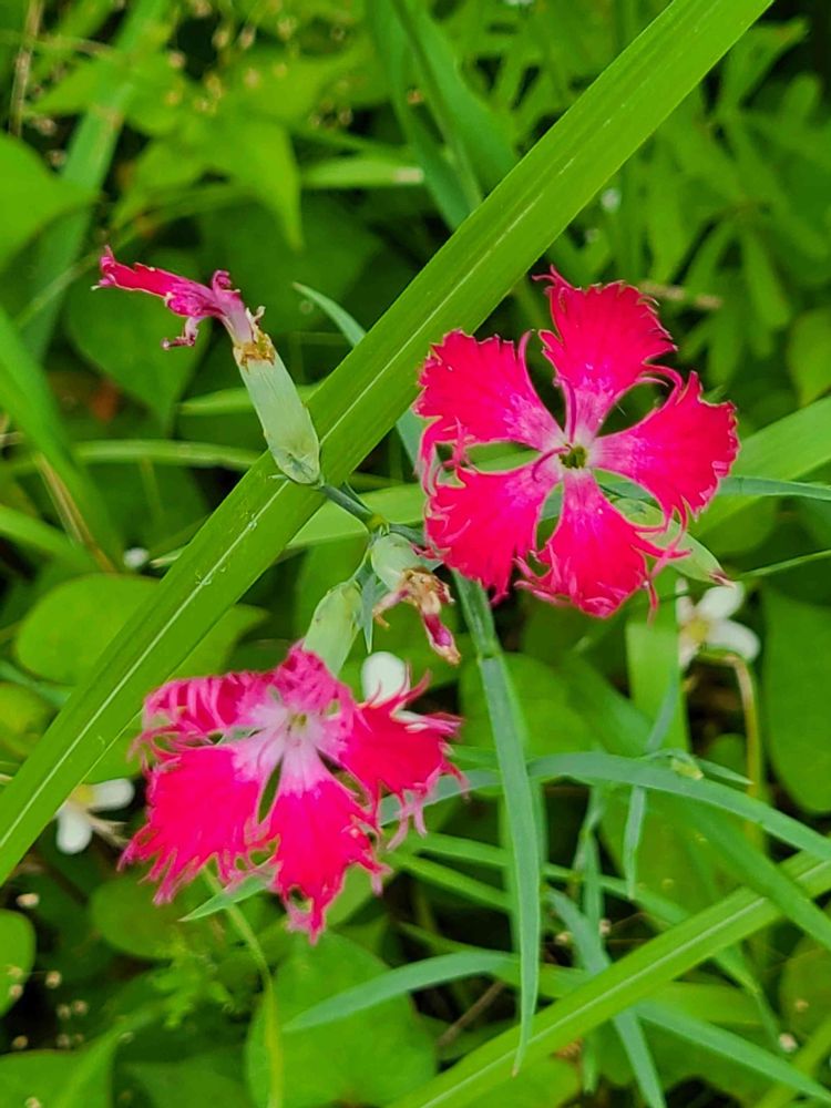秋の七草のナデシコ真っ赤な撫子がおとなしく咲いてますが何故か👀にバシャリ✨