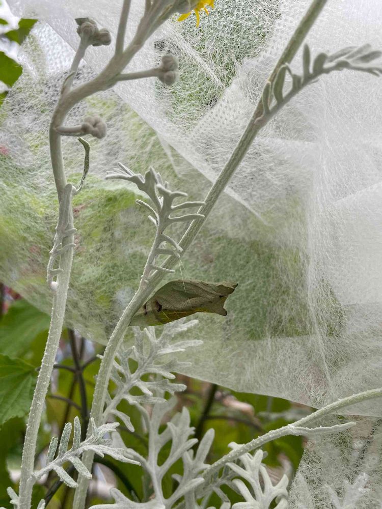 令和4年6月14日(火)曇り☁️☁️外灯が消えません おはよー^_^ございます小さい庭で朝の見廻りしています サナギ大丈夫かなぁ😲🤔😥