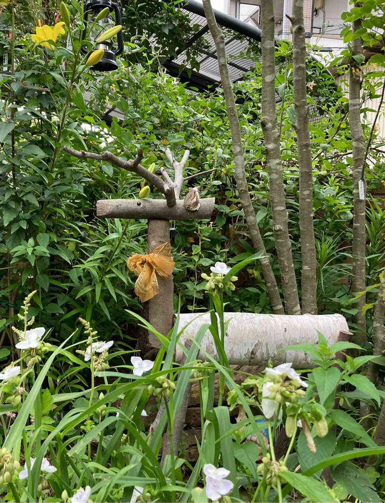 黄色の百合が咲きました❣️❣️白露草と鹿さんとのコラボで🦌