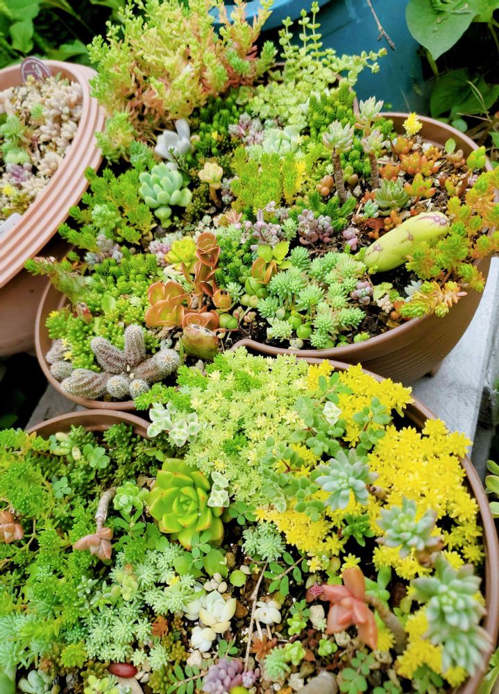 雑草と雑草系セダムが幅をきかせていますが、可愛くなってきたと思う😁