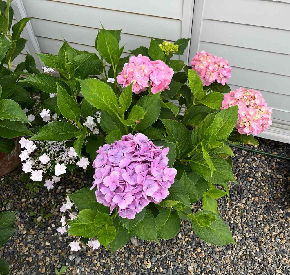 昨年、叔母の家から挿し木をもらって植えたところ、一つの鉢に2種類の紫陽花を植えてしまったことに花が咲いて初めて気づきました。