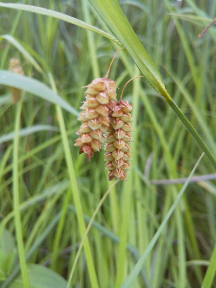 図鑑によると “側小穂は雌性、頂小穂は雄性” と ありましたので、これは雌性の小穂ですね😉