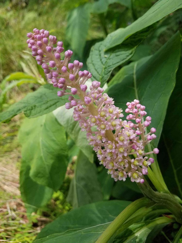 家にもあちこち生えて来るお馴染みの洋種山牛蒡しか知りませんでしたが こんなピンクの上向きに咲くヤマゴボウが…マルミノヤマゴボウですか…🤭