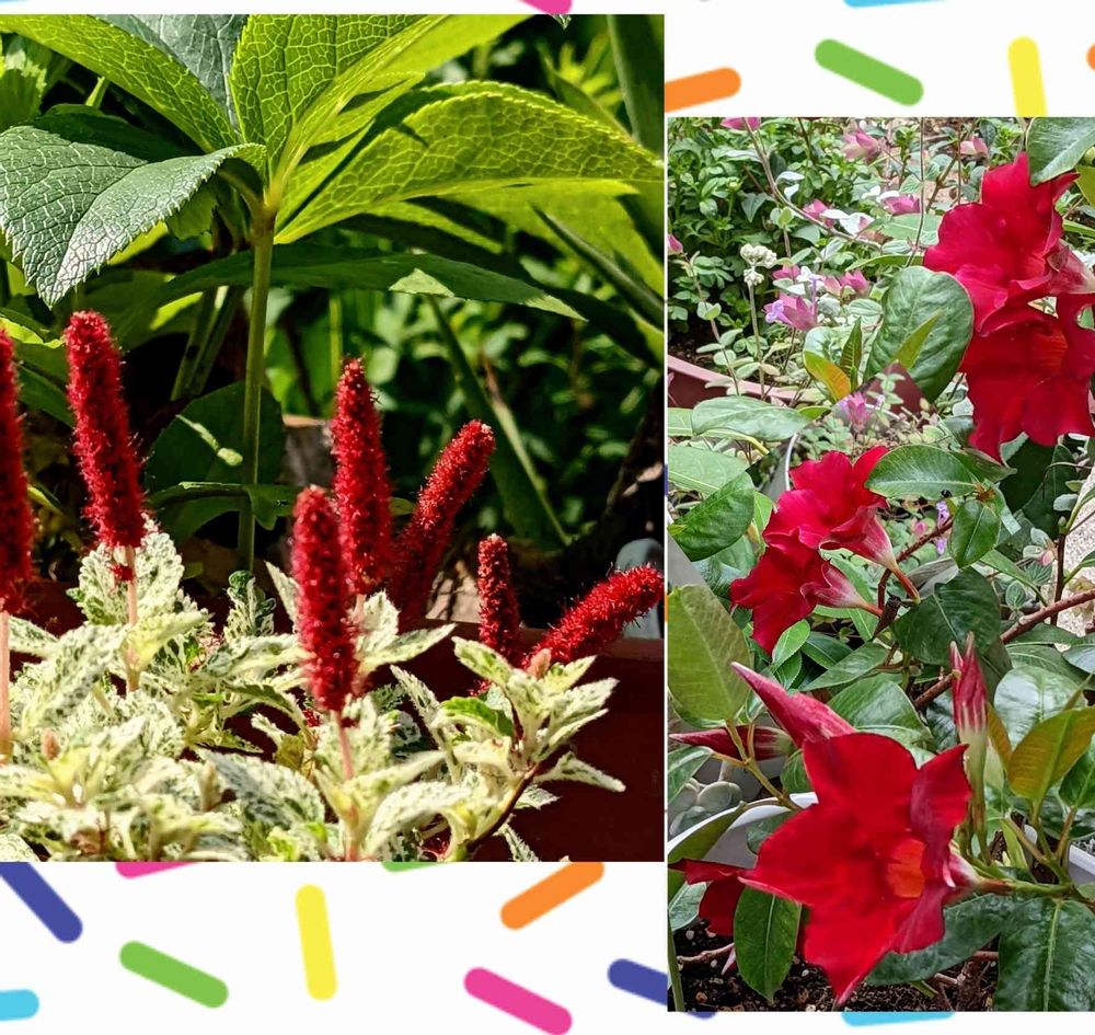 真っ赤なマンデビラ、キャトテール、鮮やかで美しいですね。ふわふわの尾ってなぜか触れたくなりますよね。