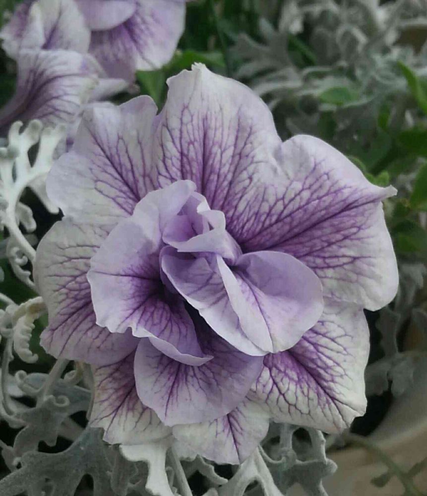 八重咲きペチュニアさんと一緒にシロタエギクさん?!がいる٩(ˊᗜˋ*)و