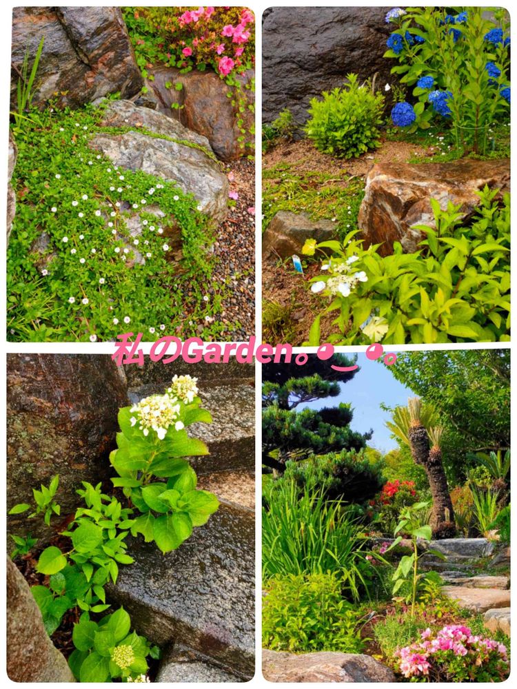 雨に濡れた庭がしっとりしてて、また良いんですよね⁉️そして晴れも良し、曇りも良し、オープンガーデン仲間には、その時期咲く物しか植え無い人も居ますが、それじゃあつまらない‼️人の為より自分の為ー1年中花が無くちゃ⁉️
