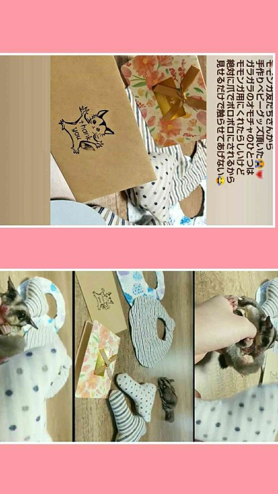 娘のペット、モモンガ友達からのプレゼント✨🎁✨ 可愛い(ღˇᴗˇ)。o♬💓