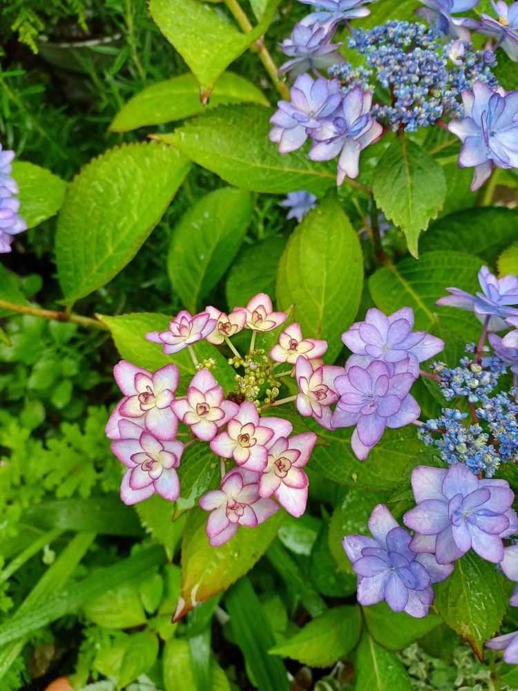 玄関前の庭🌿 ハーブ あじさい ミニ薔薇🌹 大好き😆💕 よろしくお願いします❤️ スマホを新しく🎵 データが更新です🍀