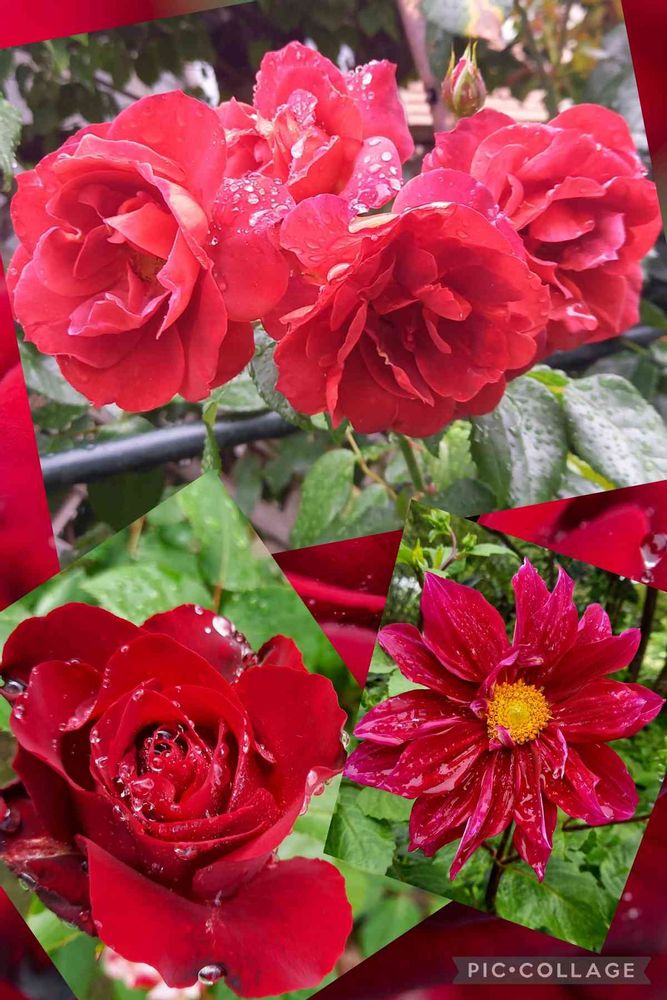 今朝は雨の中 ご近所さんの花壇に 綺麗な赤い薔薇が咲いていました😊