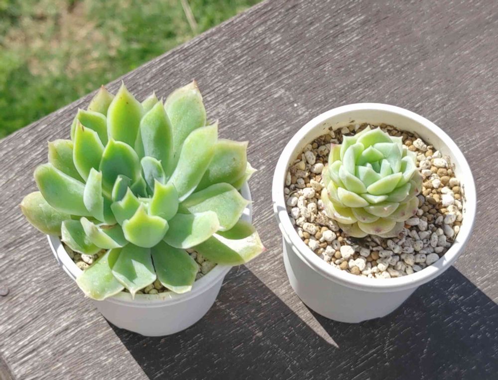 今年の3月に迎えたファイヤーフラワーとピュアラブが緑で夏顔になってました😅