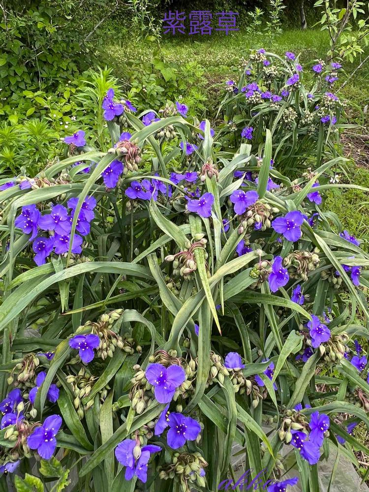 我が家の野菜畑の土手の上に、紫露草の大きな株が