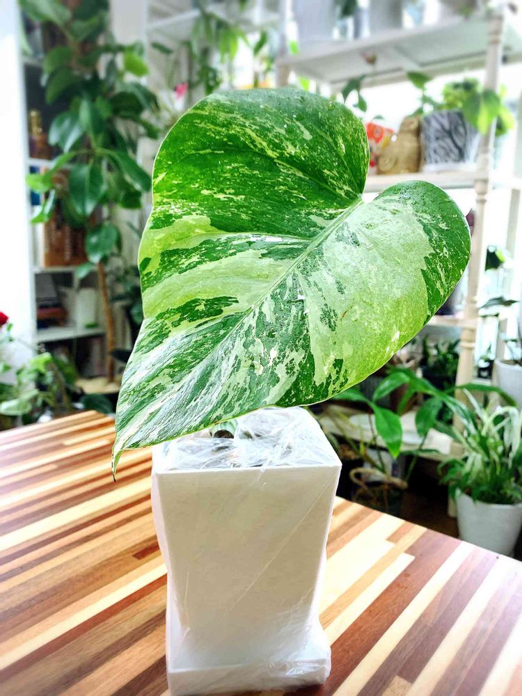 私が買ったのは半分の葉っぱが散り斑な感じの子です( ・∇・)ハーフムーンとか切れ込み綺麗な子は手が出せませんでした( ;∀;)