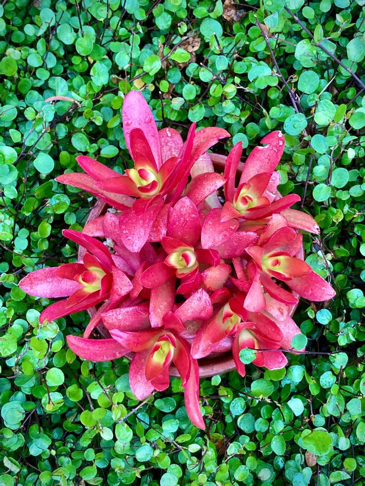 夏に向かって緑色に変化し、秋の寒さと同時にまた赤くなって、冬は室内に入れるとまた色が薄くなる…❤💚❤️🧡