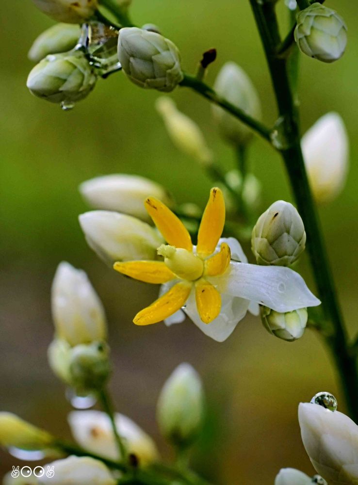 先日の 赤い実がなる普通のナンテンでは無く、白い実がなるナンテンの花🌼です。