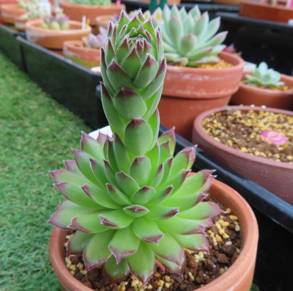 センペルビウムのラズベリーアイスの花芽が盛大に上がってきた。