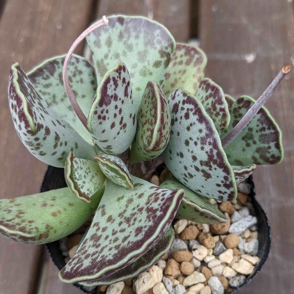 肉厚な葉に独特の模様と葉先が波打つ姿が可愛い子(人*´∀`)。*゚+