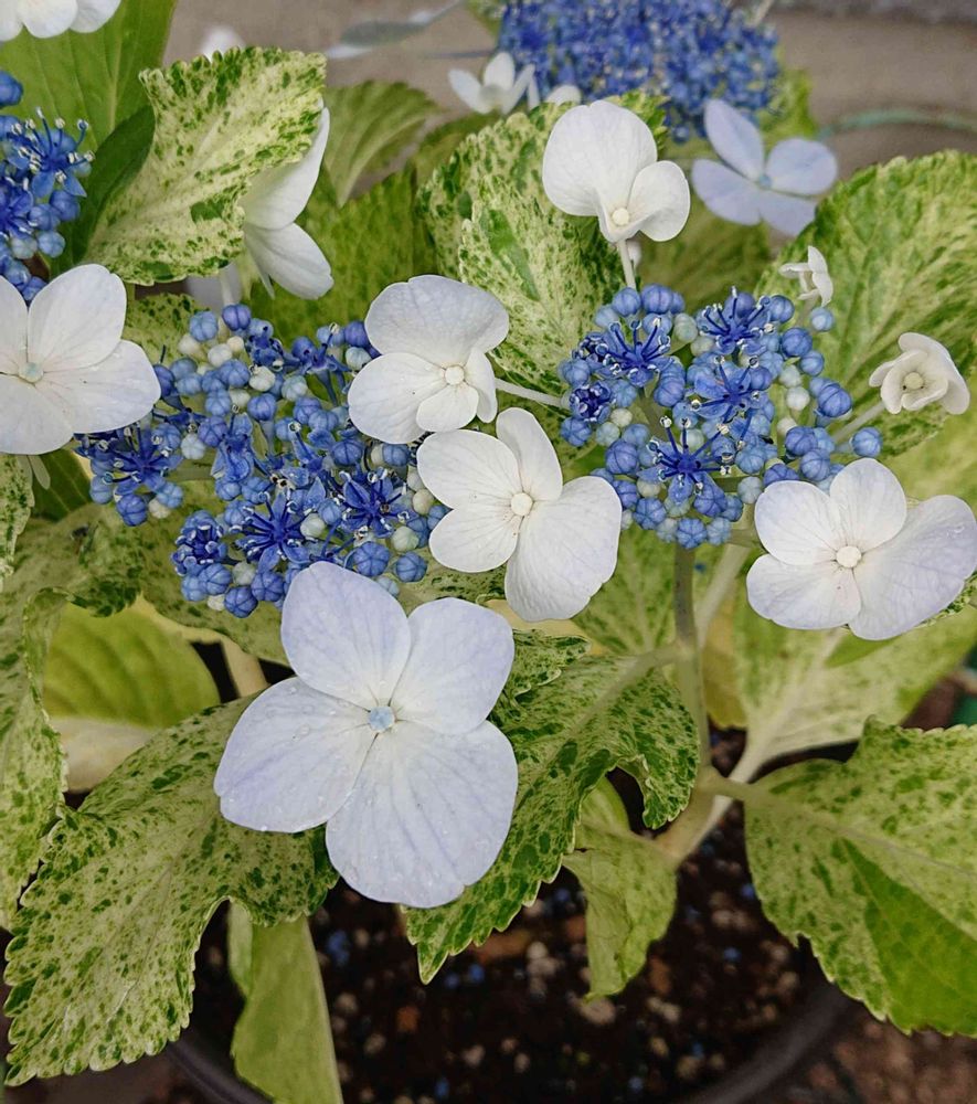 なんといっても紫陽花の葉っぱが斑入りなのが新鮮!