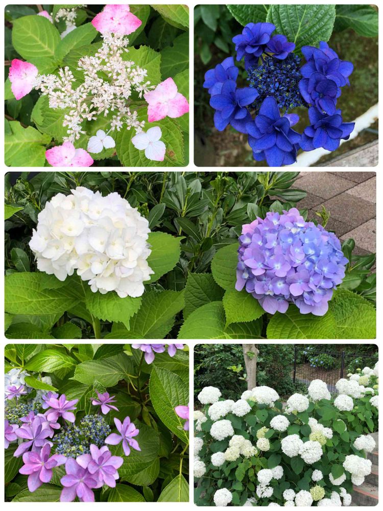 出会った紫陽花さん達です💜🤍💗💙💚