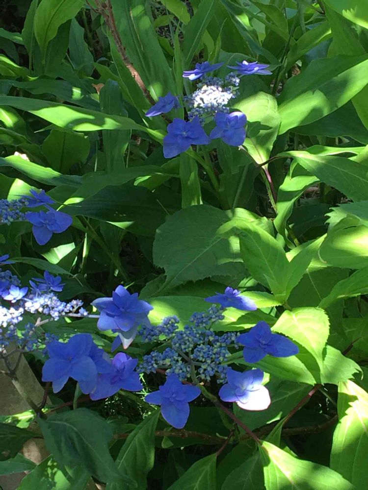 柿の木の下で 、木漏れ日しか当たらない場所でも満開になりました。