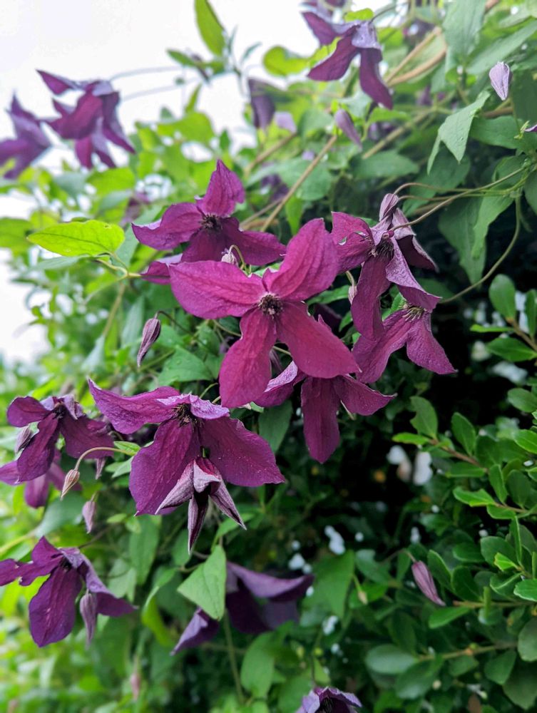 このクレマチス、色が濃すぎて映えないのがマイナスポイント💔でもいっぱいさいてくれるよー💜💜💜
