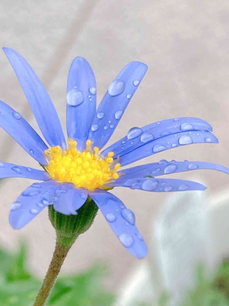 ブルーデイジーに乗る雨粒💧