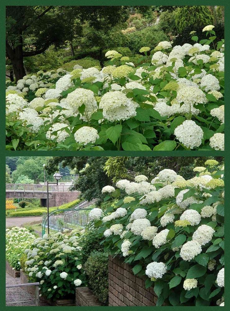 麻溝公園のアナベル群生地と、階段にあるアナベルが見事です😃🤍🤍🤍💚