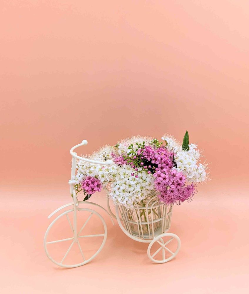 可愛い源平シモツケちゃんを可愛い🚲カゴに生けてみました😄🎶