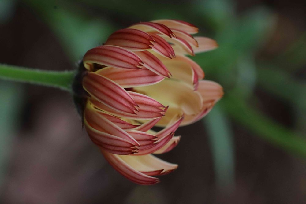 庭でカレンデュラ コーヒークリームが開きかけています。