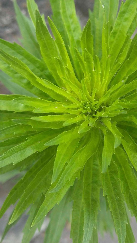 今日私も上げた抜こうとしている草…左側はヒメムカシヨモギって出てきたのよ 斜面で大きくなってお花が咲いているのは前に写しているんだけれど 上から写したらこんな花火みたいなの?
